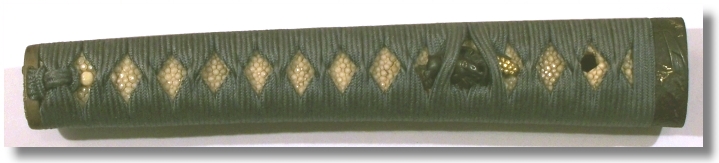 (This is a tsuka that I did in the Shonin Zuka style - Steel Blue Silk Ito; it was one of the tsuka that I had on display at the 2007 Mpls. sword show.)