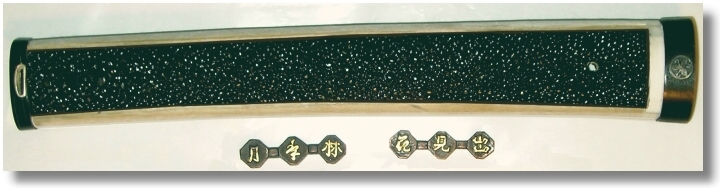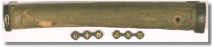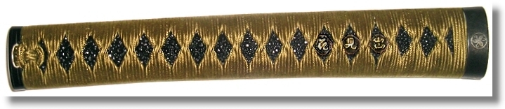 the menuki are copper/shakudo with gold kanji. At some point, the tsuka lost